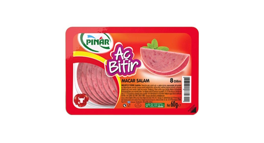 Pınar Dana Aç Bitir Salam, her dilimiyle lezzet patlaması yaşatan bir üründür. Ürünümüzün özel aroması ve dana etinden gelen lezzetiyle, meşhur Türk kahvaltısına lezzet katacak ve sandviçlerinizin vazgeçilmezi haline gelecektir. Ayrıca salata ve omlet gibi diğer yemeklerinizde de enfes bir lezzet seçeneği olacaktır.