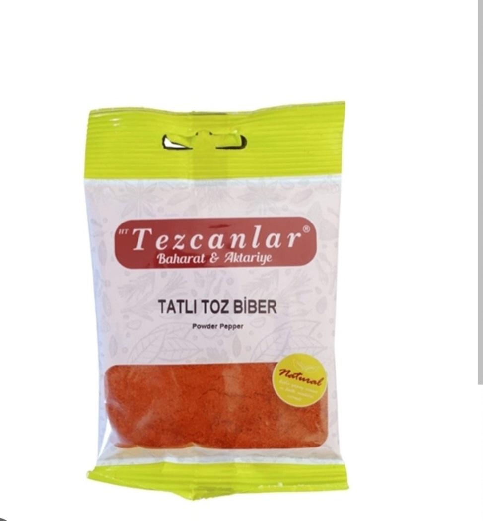 Tezcanlar tatlı toz biber, tadı ve kokusu ile yemeklere farklı bir lezzet katmaktadır. Gıda mühendisleri tarafından özenle seçilen biberler, öğütülerek ince toz haline getirilir ve paketlenir. Bu sayede baharatın taze ve doğal aroması korunur ve yemeklere lezzetli bir tat verir.