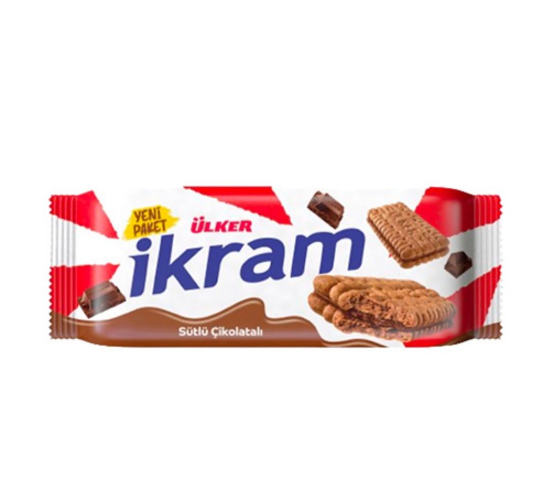 Ülker ikram sütlü çikolatalı, lezzet ve kaliteyi buluşturan bir üründür. Ülker markasının uzun yıllardır Türkiye'de sevilen bir ürünü olan bu atıştırmalık, her yaş ve zevke hitap eden bir lezzettir. Türkiye'nin en sevilen atıştırmalık markalarından biri olan Ülker'in en sevilen ürünlerinden biridir.
